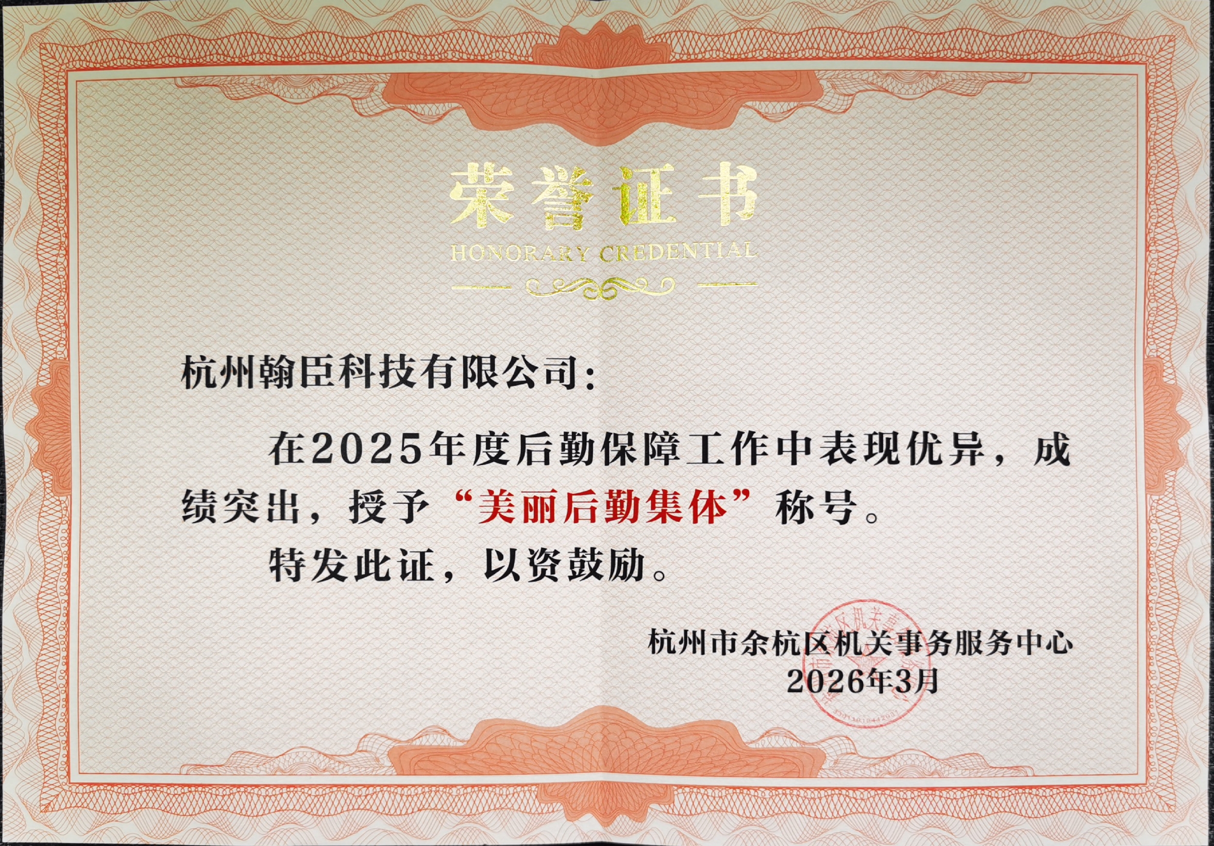 双料荣誉的获得,是余杭区机关事务服务中心对翰臣科技过去一年工作的高度肯定,更是对我们未来持续提供优质服务的殷切期望。