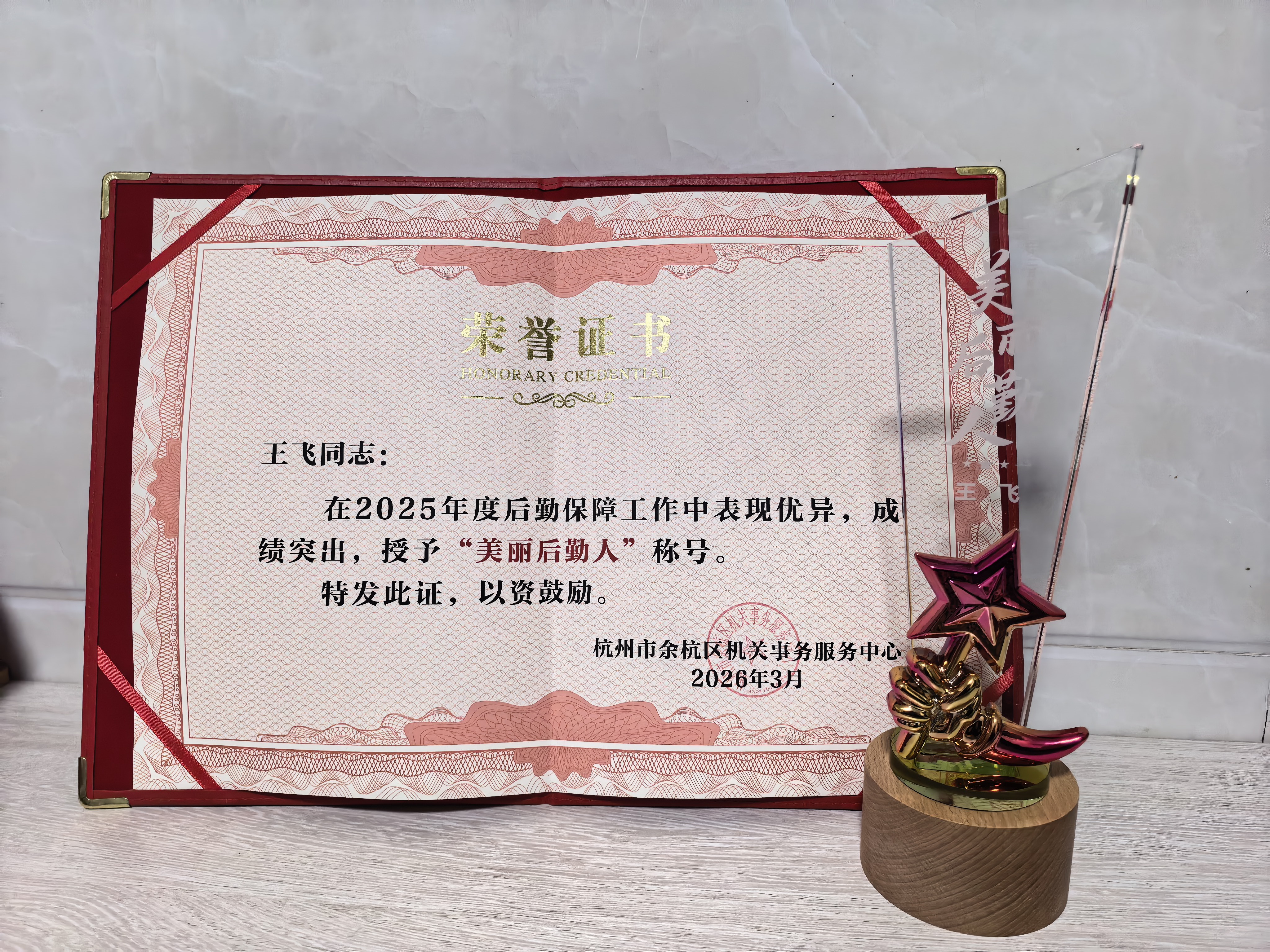 与此同时,我公司员工王飞同志,也凭借其兢兢业业的奉献精神和精湛的业务技能,再次斩获 “美丽后勤人” 个人殊荣!